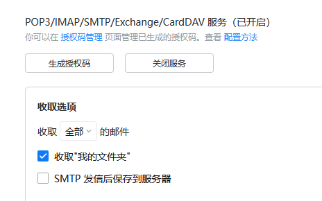 找到“POP3/SMTP服务”和“IMAP/SMTP服务”项,点“开启”。